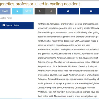 Fallen Friend #2 on the BFA list is Marjorie Asmussen, a professor at UGA. As you can see in the articles that follow she, like many of our friends had a passion for cycling and were just great people. RIP my friend. BFA will always remember, never forget you!! Friend #3 will be in Norcross, Ga, Tony Serrano! Should only take a day or two to get there!!